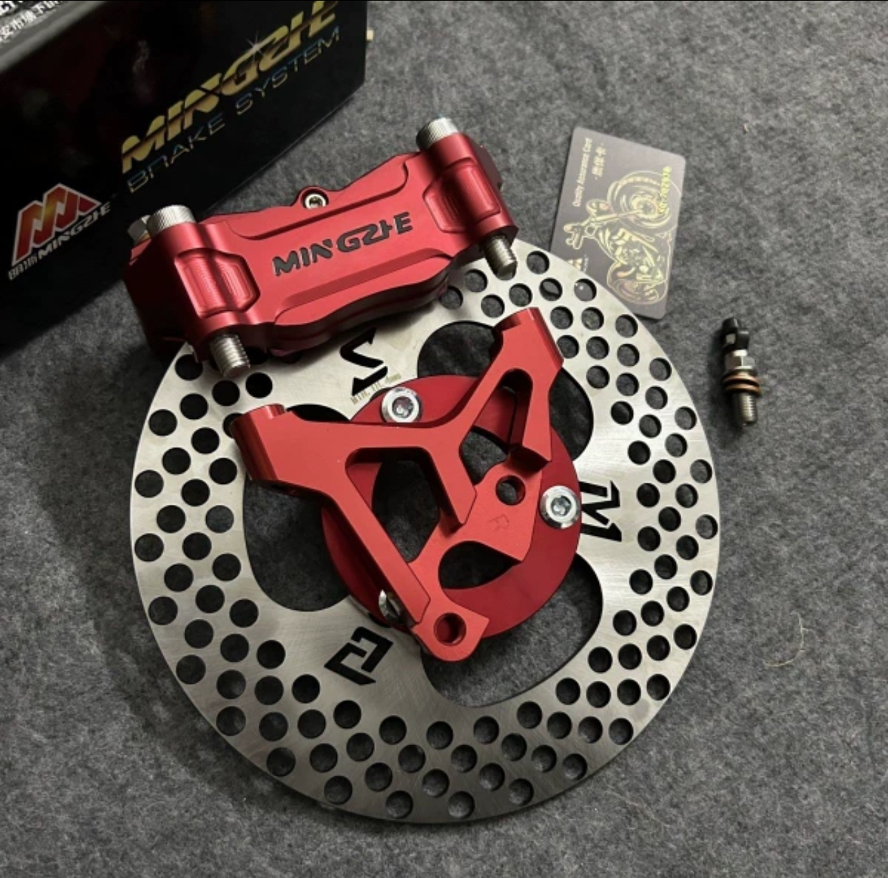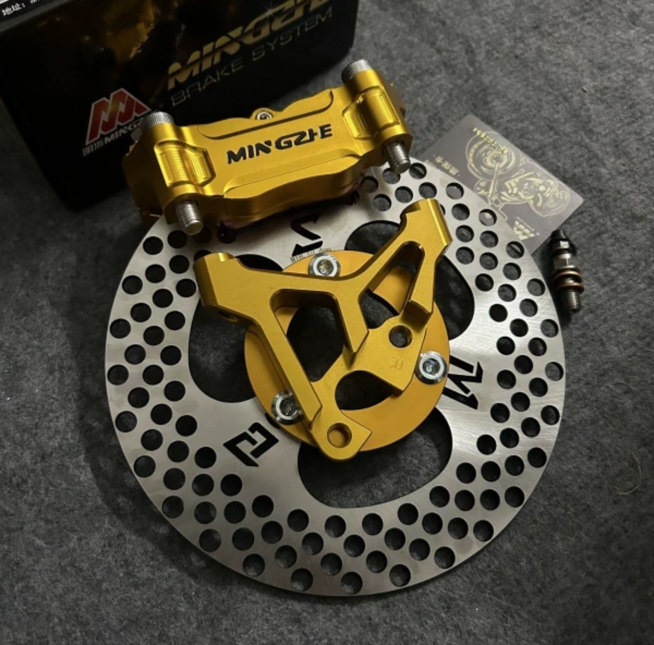 Upgrading your brake is interesting for people who drive faster and perhaps the original scooter brake is not strong enough. If you are a heavy driver or you often drive with two people, this puts a lot of stress on the brakes which may result in the original brake not being able to effectively stop the scooter in time. Or you just like the look of having a upgraded brake then you can consider our brake upgrade set. The brake upgrade set is fine-tuned for your scooter meaning that if you have an NIU we will have suitable adapters so that the upgrade set will fit your bike without having to do any major modifications such as changing your shock absorbers or scooter wheel. The brake calipers come in four different colors, black, red, silver, steel and gold and with the purchase of our brake caliper set if you have any issues installing the brake yourself we can give you live customer service feedback in order to help you install the brake.