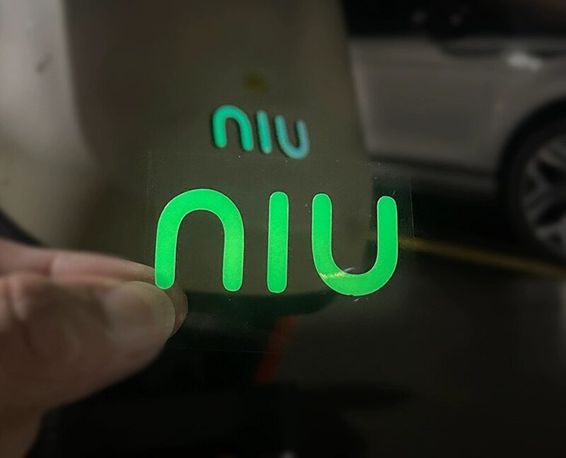 NIU luminous front and rear car logo sticker dazzling fluorescent decorative sticker.
