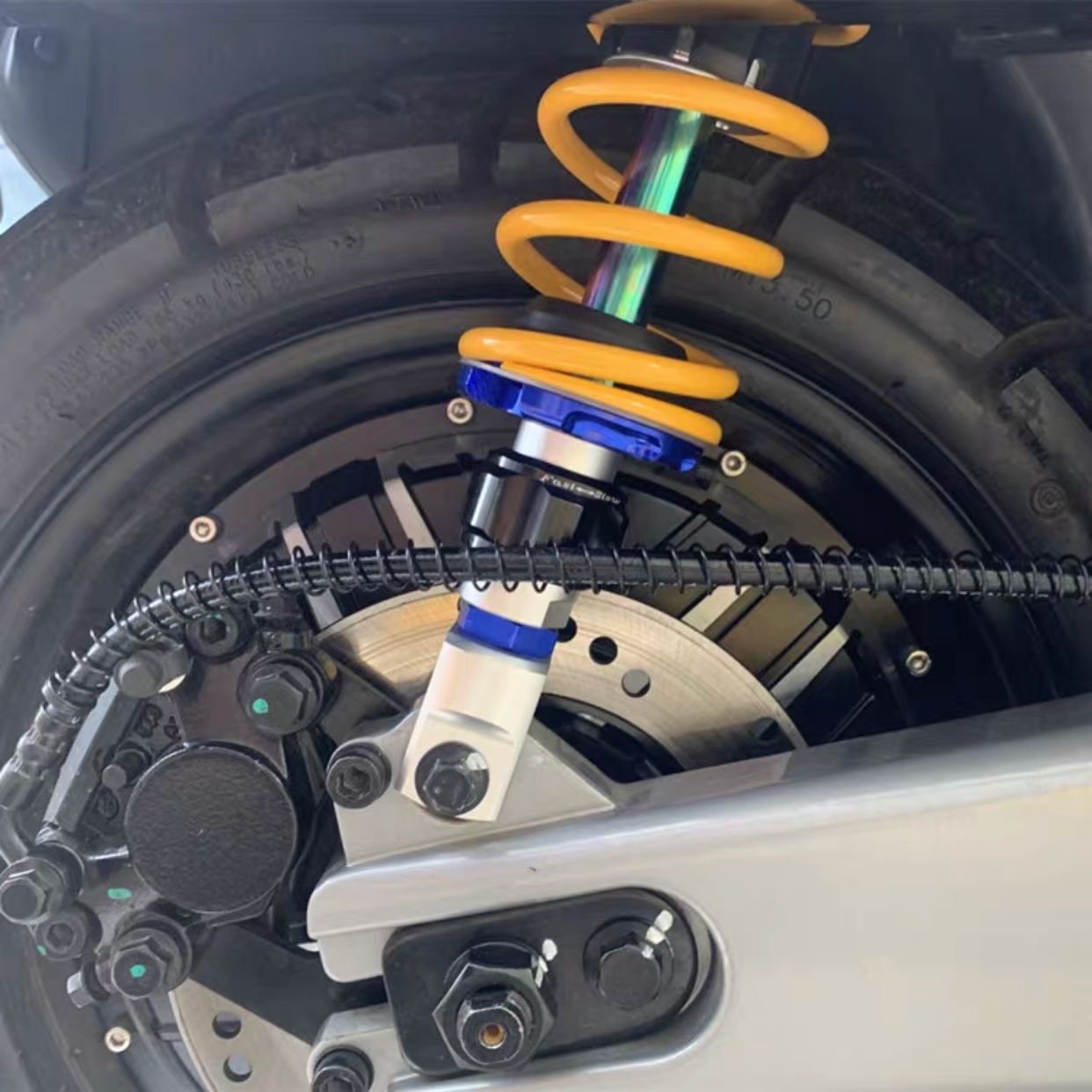 These custom rear shock absorbers for the NQi-Series can directly be installed. By upgrading your rear shock absorbers you are greatly improving your driving experience. The shock absorbers are adjustable so you can determine yourself whether you want to drive on a harder or softer suspension. For people who travel long distances a softer suspension will allow for a more comfortable ride since the dampening of potholes and bumps will be significantly lessened.